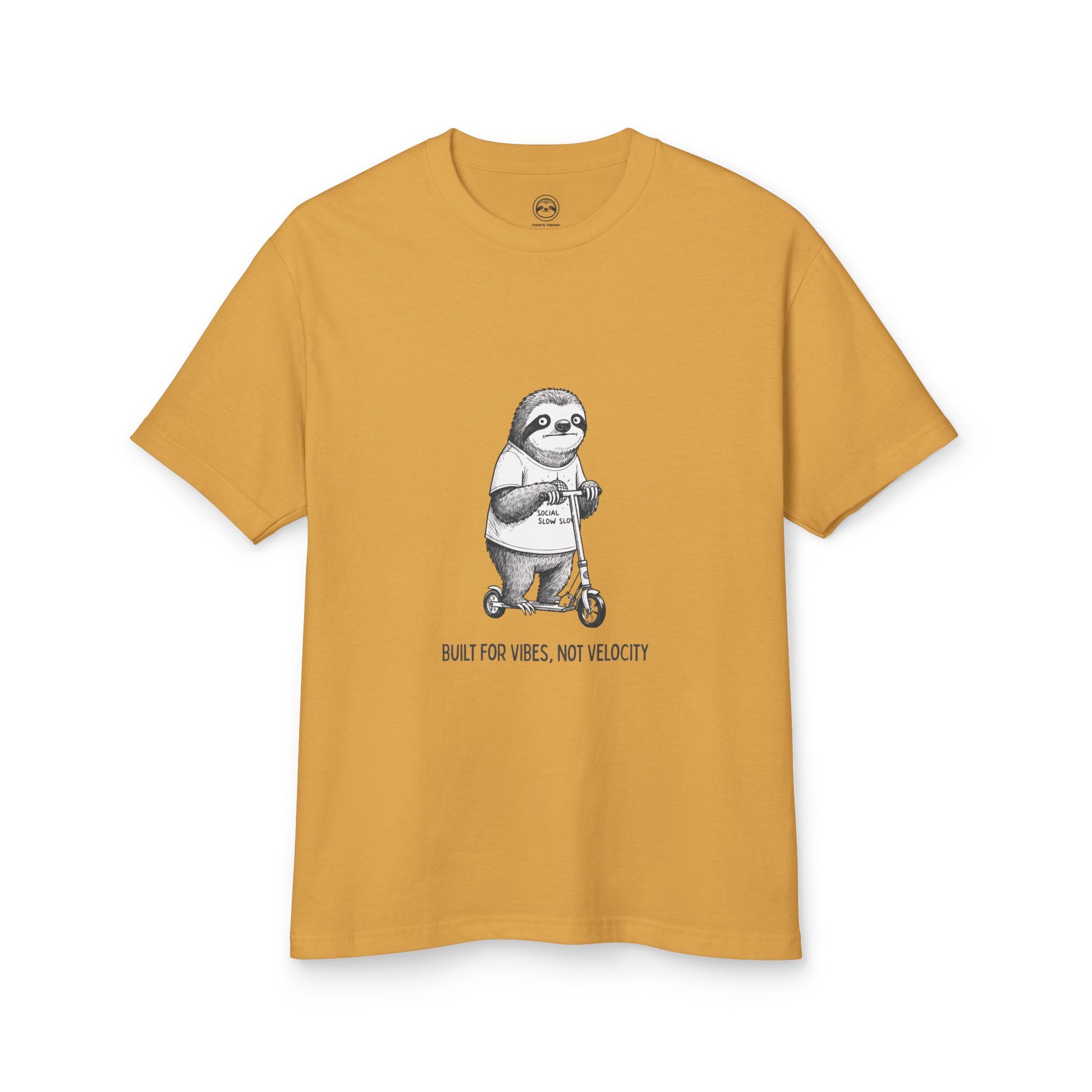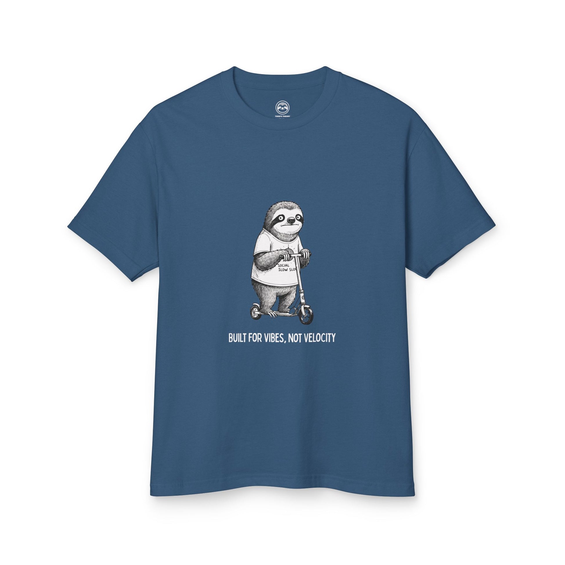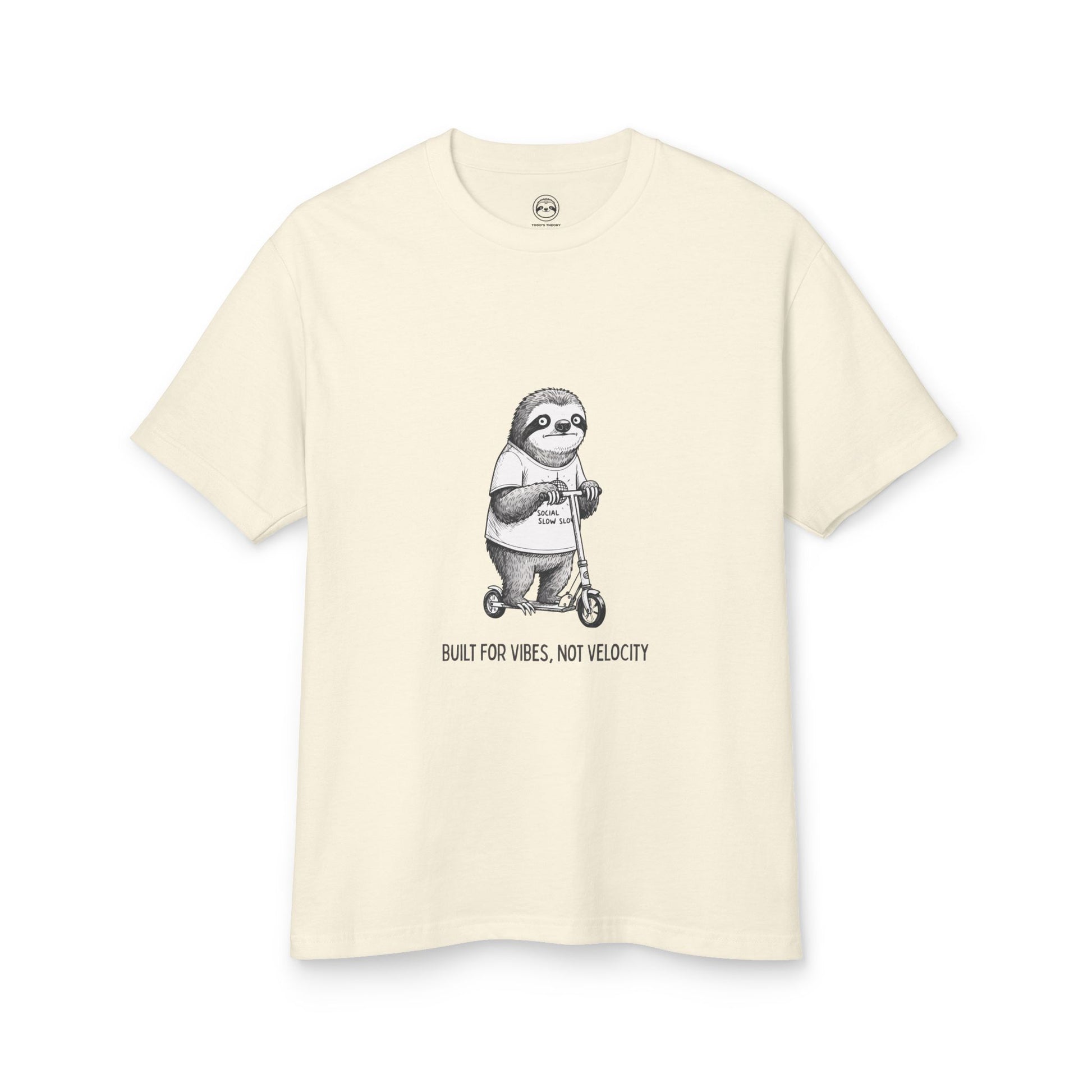 Featuring a hand-drawn sloth cruising on a scooter with the caption “BUILT FOR VIBES, NOT VELOCITY,” this shirt is the perfect mix of laid-back humor and everyday comfort. Wear it to work, WFH days, slow weekends, or whenever your personality is set to low battery mode.