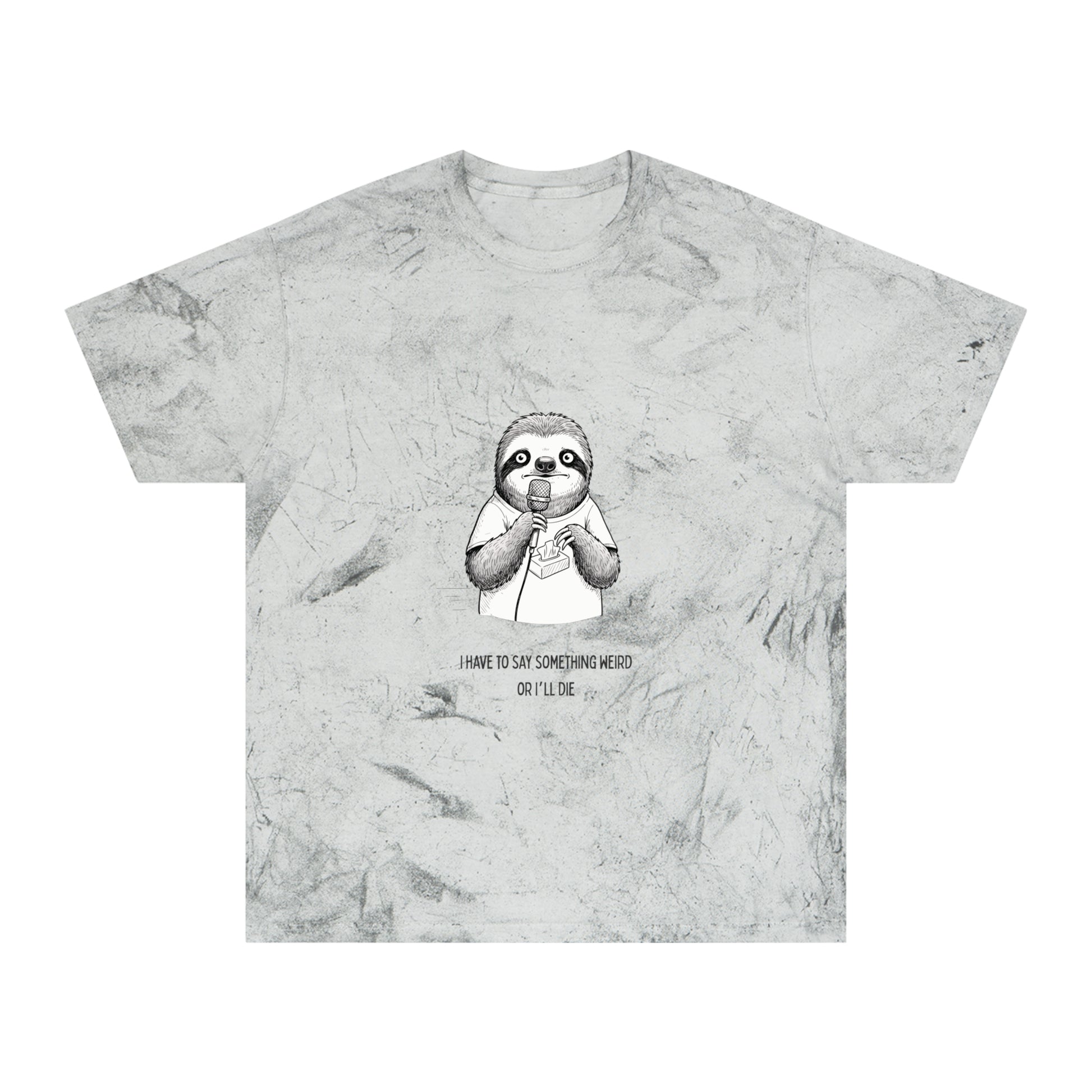 Featuring a hand-drawn sloth holding a microphone and the caption “I have to say something weird or I’ll die”, this shirt nails that socially awkward, quietly hilarious vibe—perfect for casual hangouts, comedy nights, office days, remote work, or whenever your brain decides now is the time.