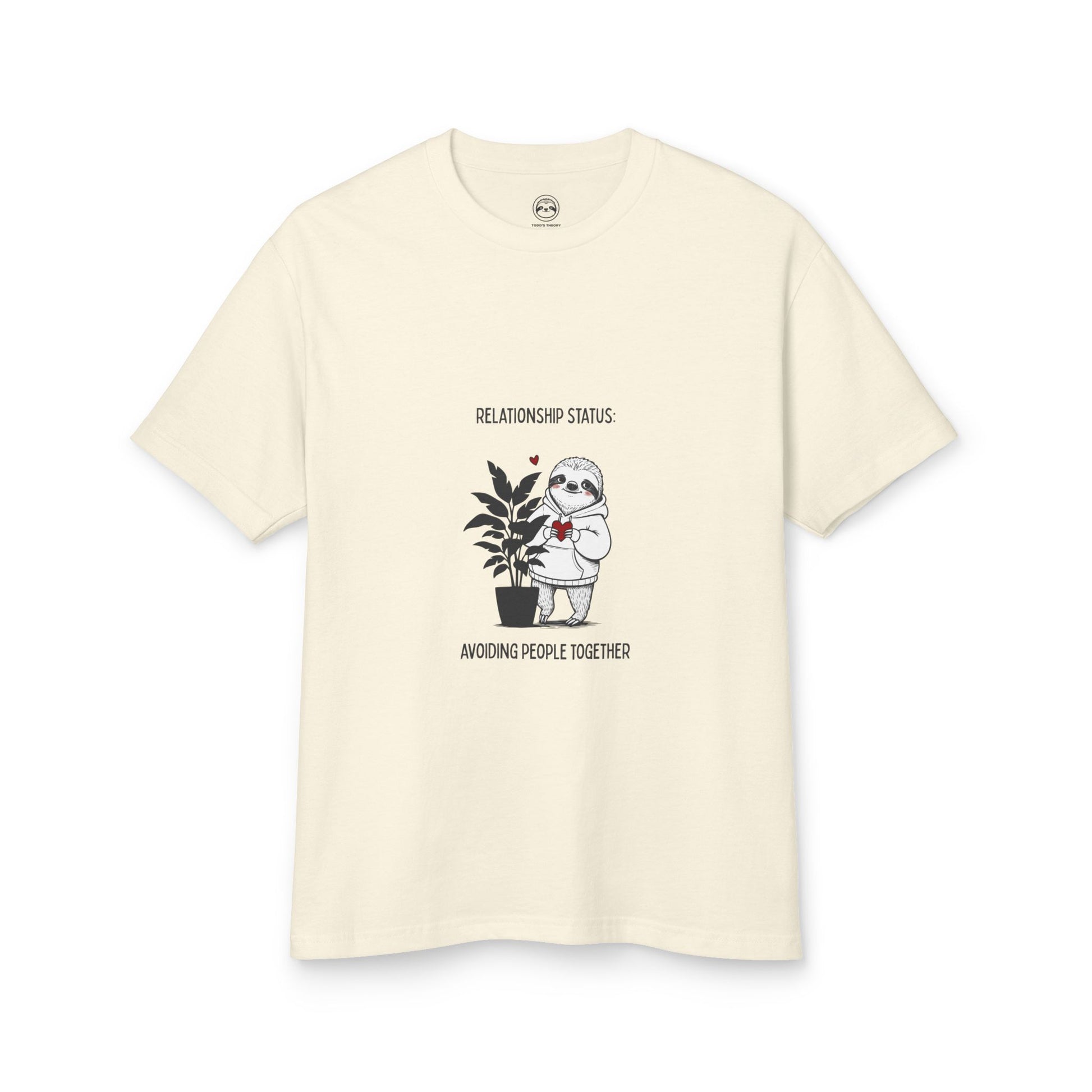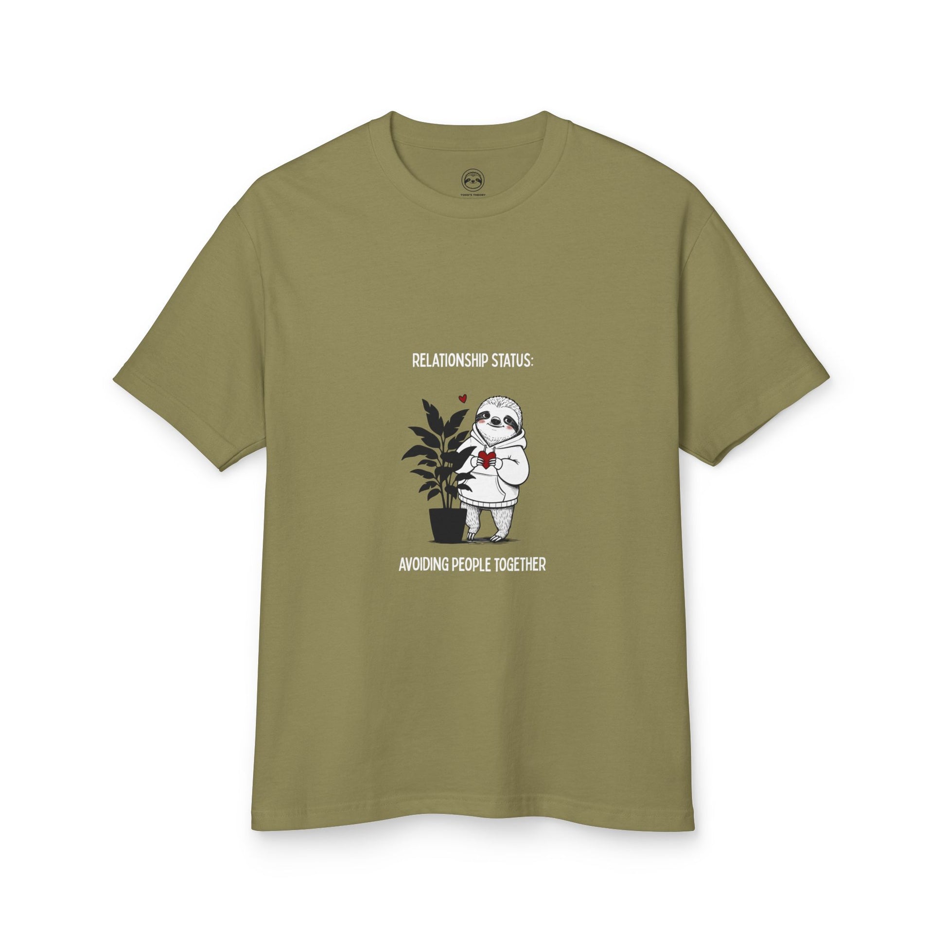 If your love language is canceling plans, this one’s for you. This funny introvert couple t-shirt features a hand-drawn sloth and plant with the line “Relationship Status: Avoiding People Together”—a low-key, relatable vibe for homebodies, overthinkers, and anyone who prefers cozy company over crowded rooms.